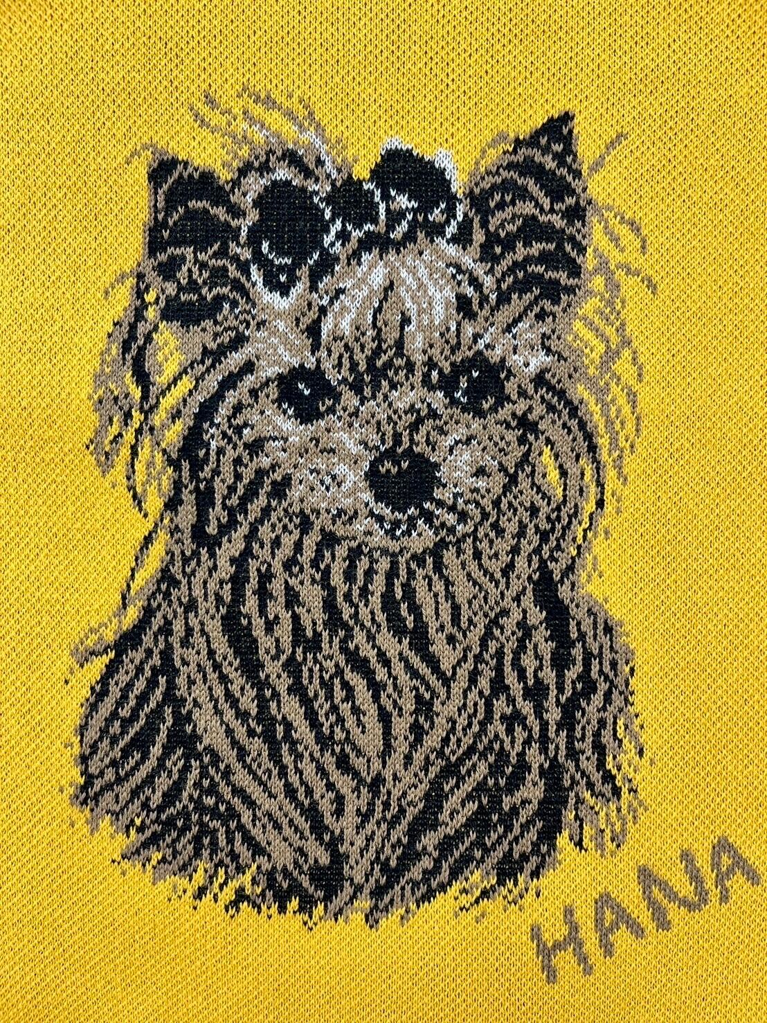 この商品は、大切なペットのお写真をもとにオーダーを受付けます。お名前も編み込み柄にてお入れしますので、特別な贈り物やプレゼントにもぴったりです!オプションの「名入れ」を選択しお名前を記入ください。